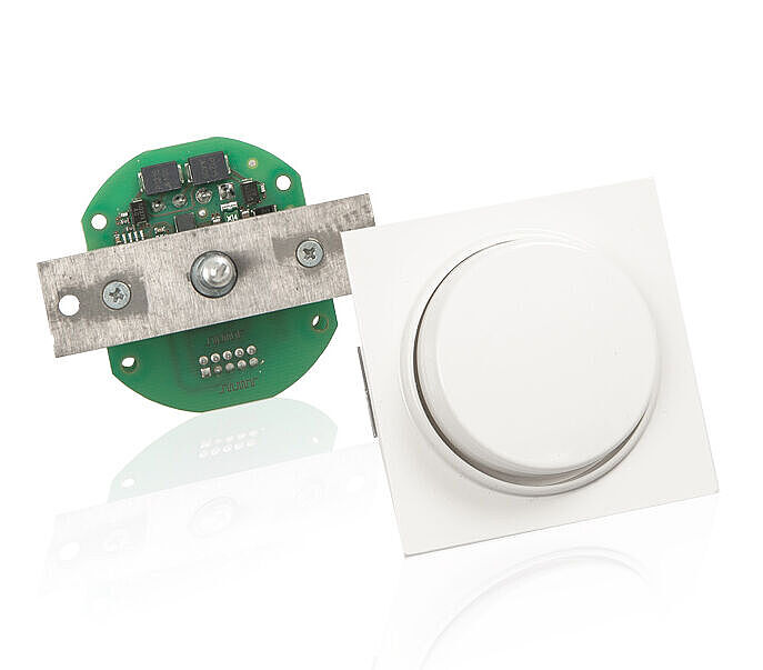 The Digital Potentiometer DPI-01U-4MM with pushbutton is intended for standard dimmer covers for mounting in a flush-mounted box. It has been developed for applications that require endless movement.