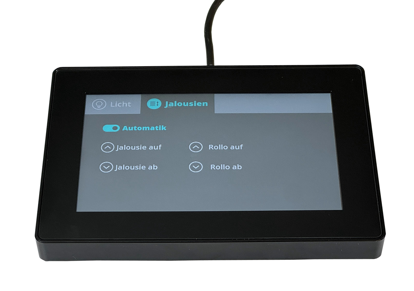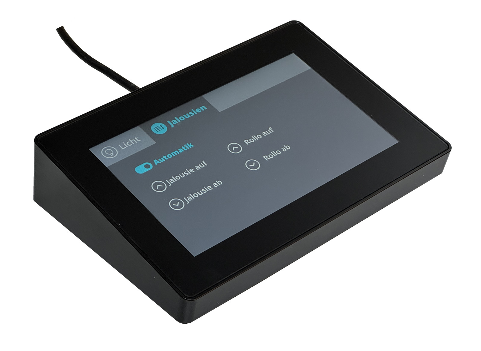 Another special feature is the "D-O-T-Switch" function (Display-off-Touch-Switch). This allows the panel to be activated with a key function when the display is switched off. At the same time a command is sent, e.g. to switch on the light in the room. So you can switch on the light with your elbow, if you don't have a free hand, like you are used to with normal switches.