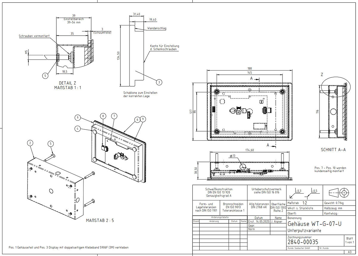 Dimensions flush-mounted housing | HxWxD: 174,6mm x 116mm x 35mm |