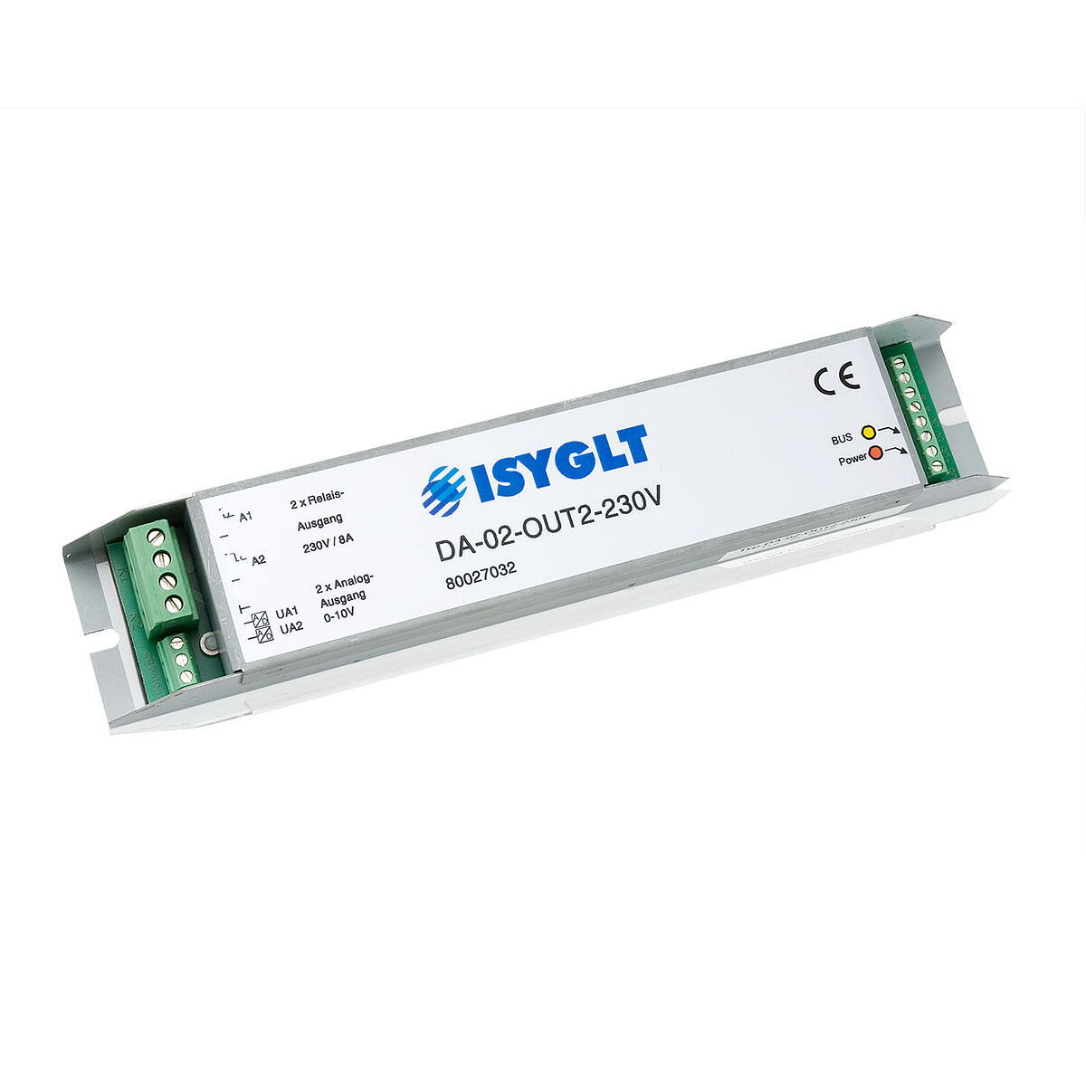 Mit dem Leuchtenendgerät steht ein Analog-Modul zur Verfügung, das bezüglich Gehäuse und technischer Daten speziell für den direkten Leuchteneinbau konzipiert wurde. Mit den Relais- bzw. Analog-Ausgängen können 2 Lichtkreise getrennt geschaltet bzw. gedimmt werden. Zusätzlich ist eine automatische Notbetriebsfunktion integriert.