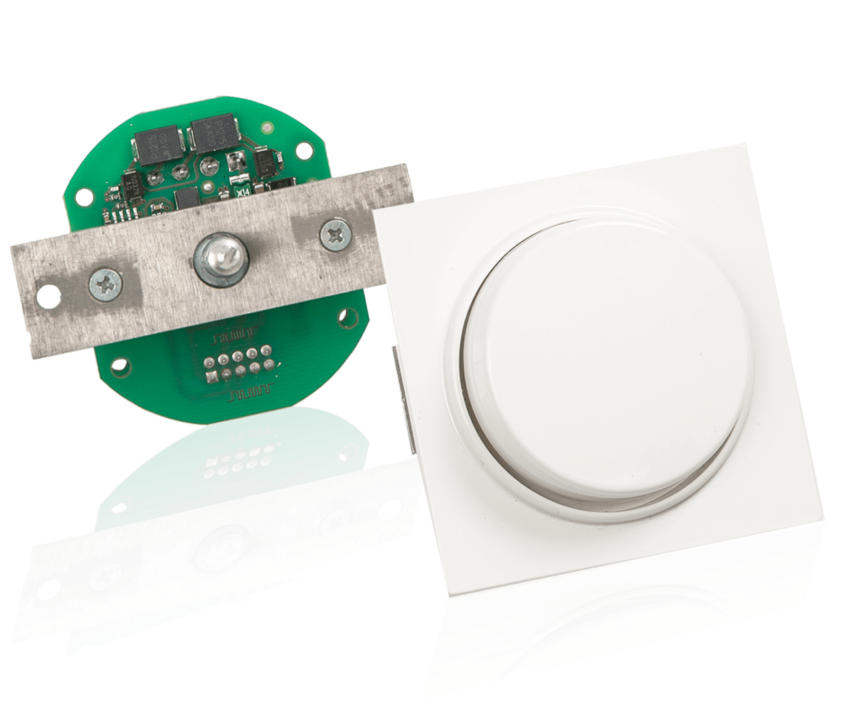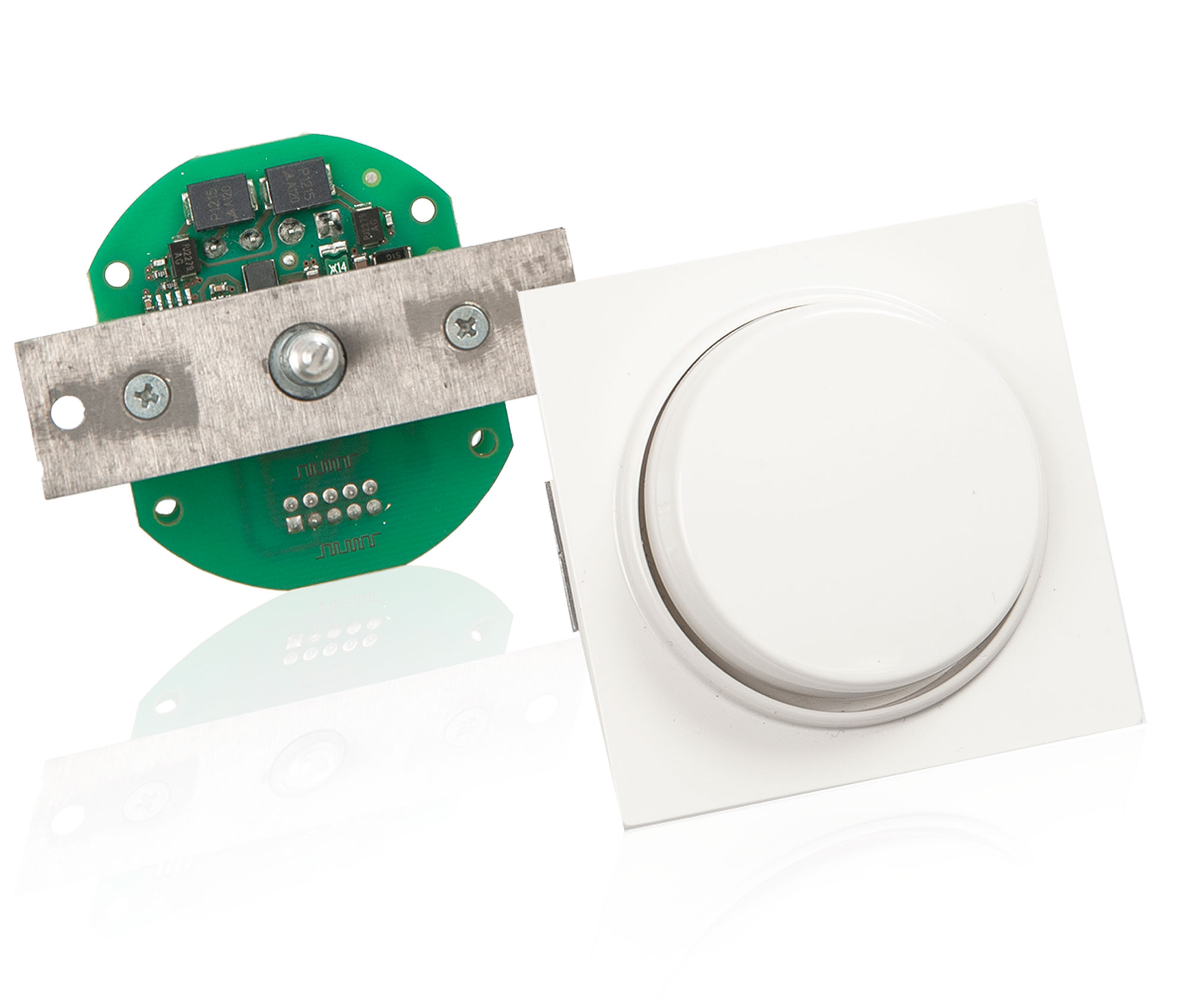 | Bauform | Leiterplatte mit Montageblech und Adaptermutter für Standard-Dimmer-Abdeckungen zur Montage in einer UP-Dose |